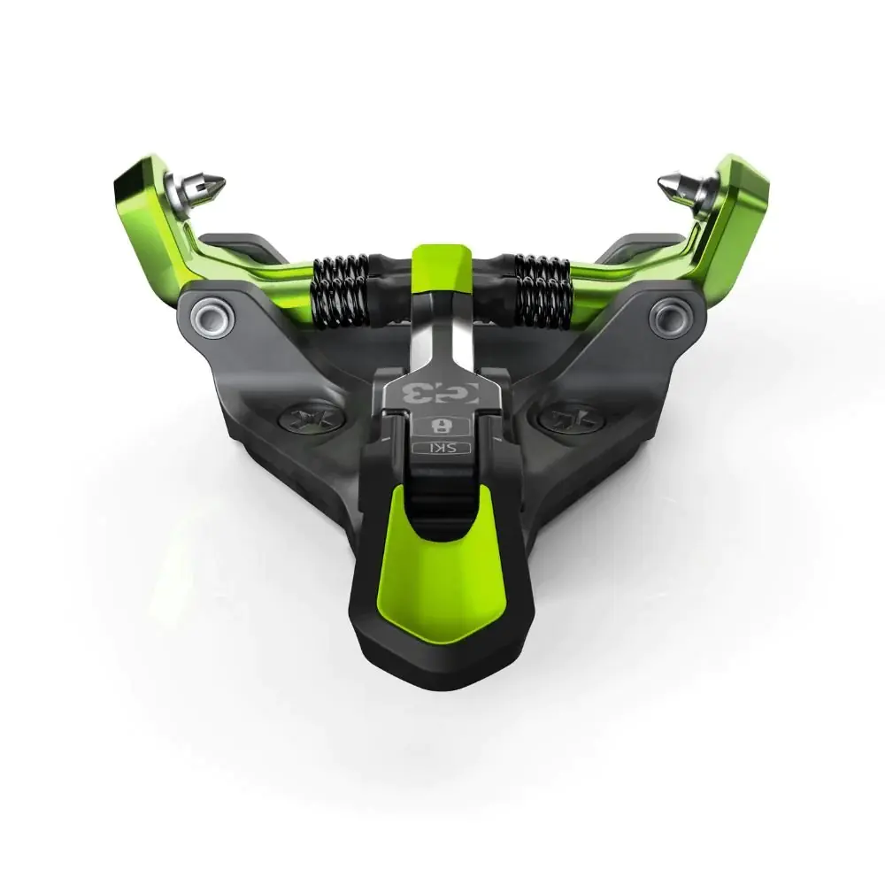 Anti-snowpacking features built into the toe and brake designs keep snow away and make for a confidence-inspiring step-in. Optimal toe elasticity for maximum energy absorption & minimized prerelease. 8.5 mm range of forward pressure in the heel to maintain consistent release. Wide freeride mount transfers power to the ski & provides pull-out resistance. The wide center support of the turret and a metal wrap-around base transfer power and precision to the ski.  Leashes and Brakes are sold separately.