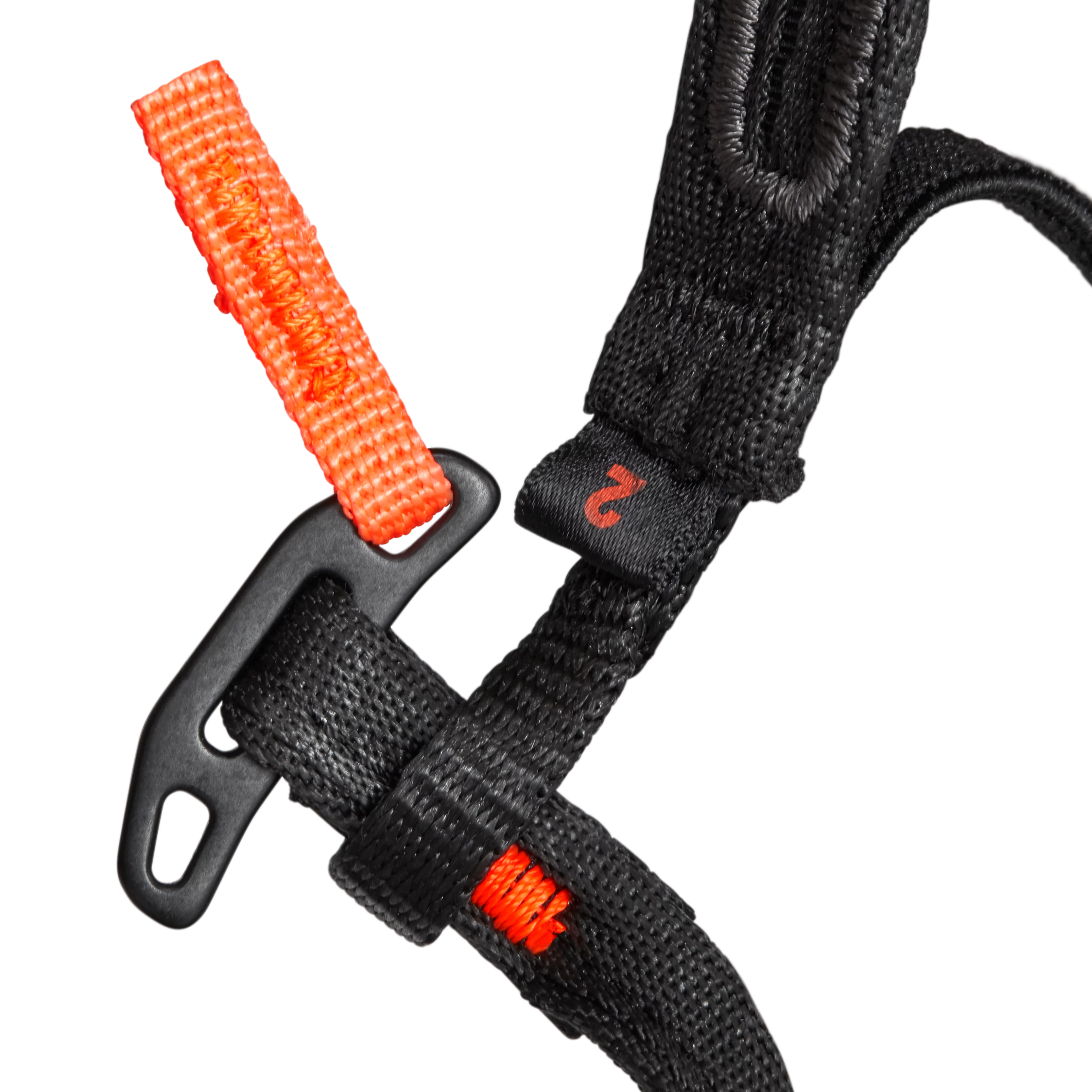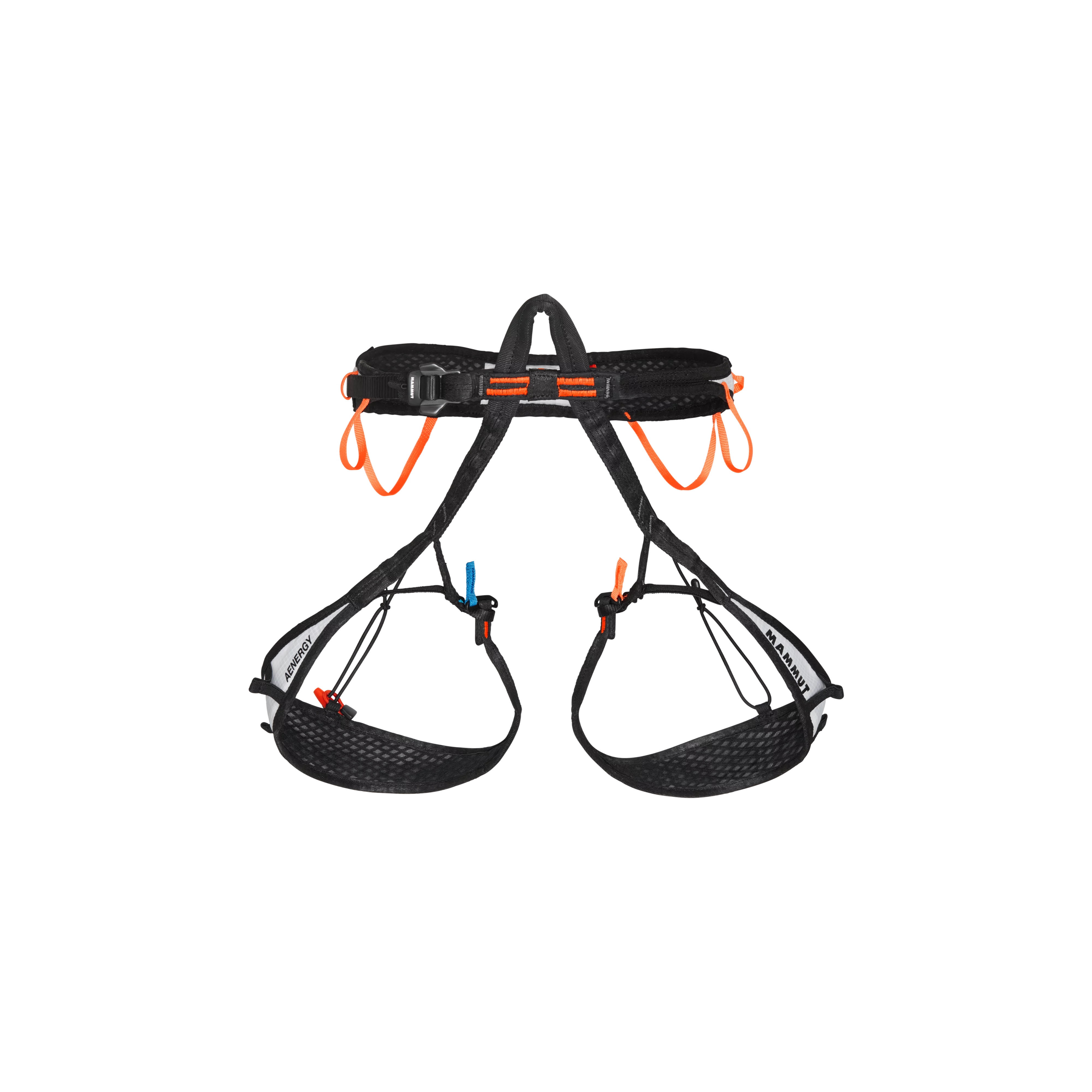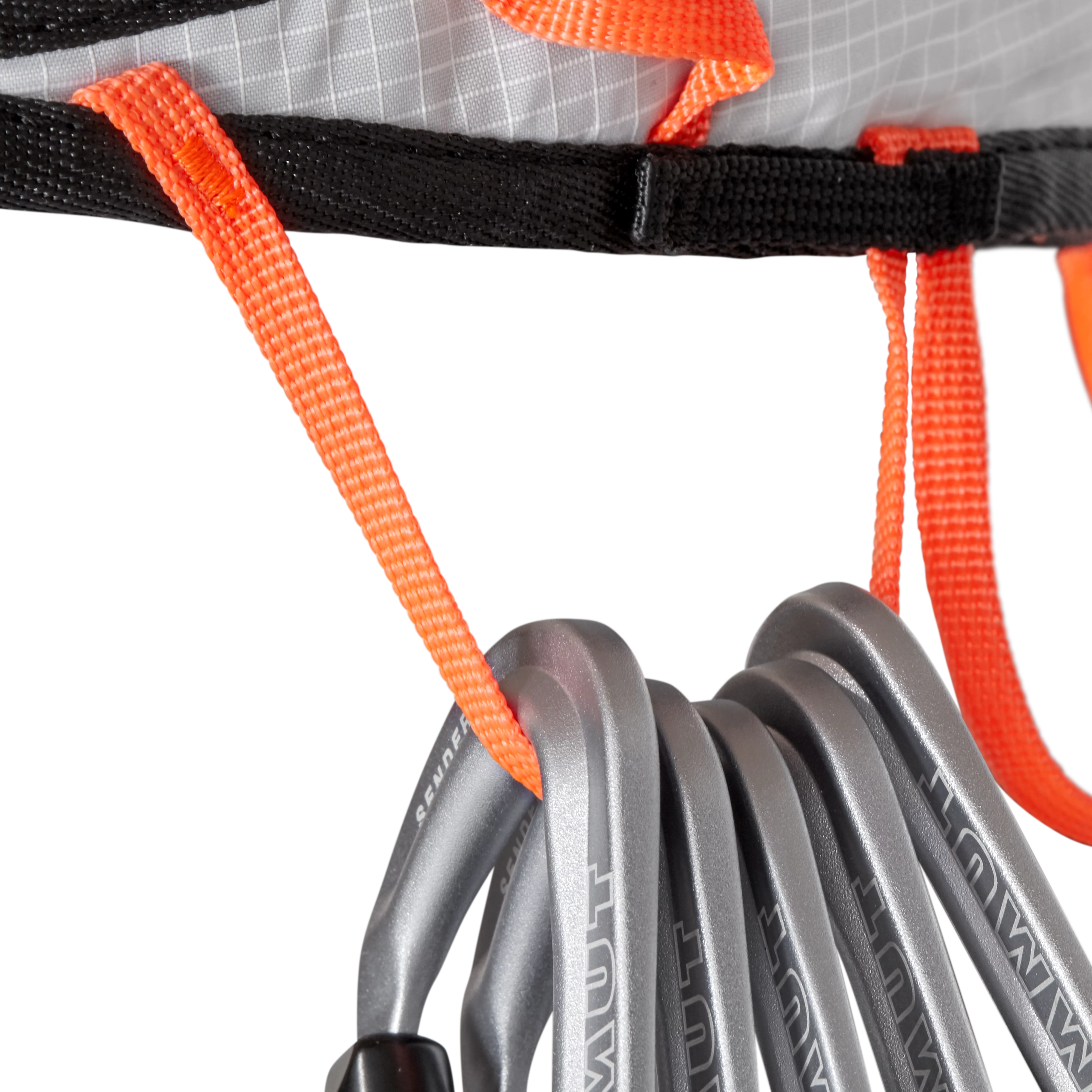 The lightweight high-touring harness combines low packing volume with top comfort for long glacier and high-altitude ski tours. With the help of color-coded instructions, you can easily put the Aenergy Harness on without removing your skis or crampons. The wing-shaped buckles on the hip belt make it easy to adjust the waist even with gloves on. The central fixed tie-in loop keeps the harness and rope in a secure, comfortable and upright position, preventing irritation when walking. Thanks to the surface band construction, your weight is evenly distributed – this compact high-touring harness guarantees comfort even while hanging on the rope.