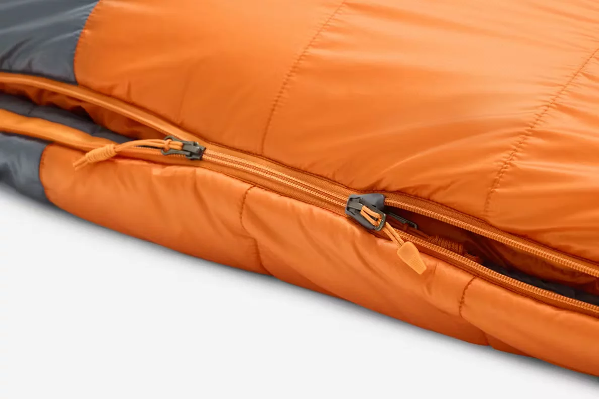 Curl up in a bag that measures up to your loftiest aspirations for comfort, warmth, and all-weather resilience. Rated to keep you warm at temperatures as low as -18°C, this super-lofty synthetic mummy bag is made of 100% recycled fabrics and fill that continues to hold heat even when water creeps in. Light, plush, and packable, it's your home away from home whether you're taking it out of your pack on the trail or pulling it out of your trunk at the campground. The full-length left-side anti-snag zipper and additional short-right zipper let you control your comfort with precision and a cozy blanket-like feel—while the ISO tested temperature-rating means you can rest assured that your bag will hold up when temperatures hit zero. Roomy footbox gives your feet room to relax and recharge while insulated draft tube ensures cold air can't drift in when you're drifting off to sleep. An internal stash pocket is ideal for your contact lenses or headlamp, while the included compression sack means you can cinch, stuff, and head out for the week or the weekend.
