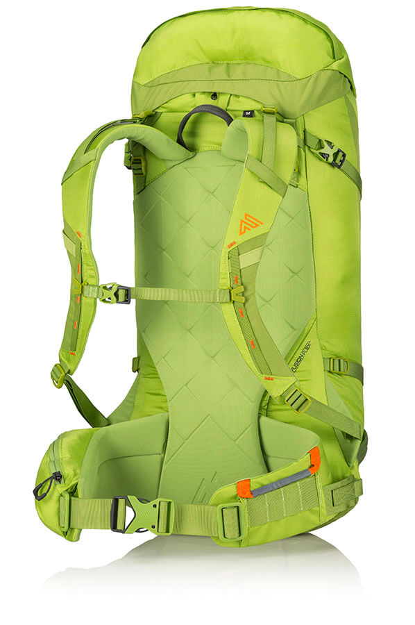 The Alpinisto 35 brings the same features as the Alpinisto 50 in a smaller, lighter format. Lightweight abrasion-resistant fabrics and reinforced construction give you peace of mind while you’re beating your gear senseless. A strippable design with removable floating lid, frame, framesheet, and hipbelt makes light-and-fast ascents lighter and faster. Dual hybrid ice tool attachments and an oversized crampon pocket keep bulky gear secure, and a full-length locking side zipper offers total access to the top-loading main compartment.