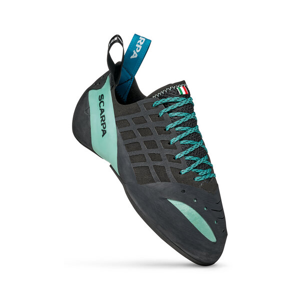 Appreciated by climbers for its ability to cope with almost all climbing terrain, the instinct adapts perfectly to a large variety of footholds and angles. Reduced volume with slightly asymmet-rical, downturned shape, with a medium angled toe box.
