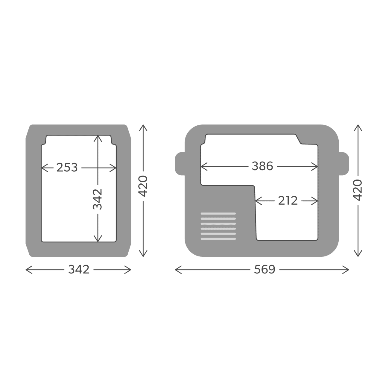 Total volume of 25 l fits 40 cans or five 1.5 l bottles