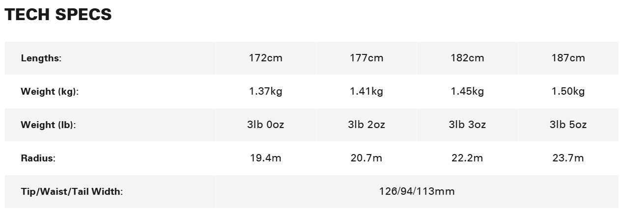 - Παραδοσιακό προφίλ Camber με πρώιμη ανύψωση της μύτης για βελτιωμένη άνωση