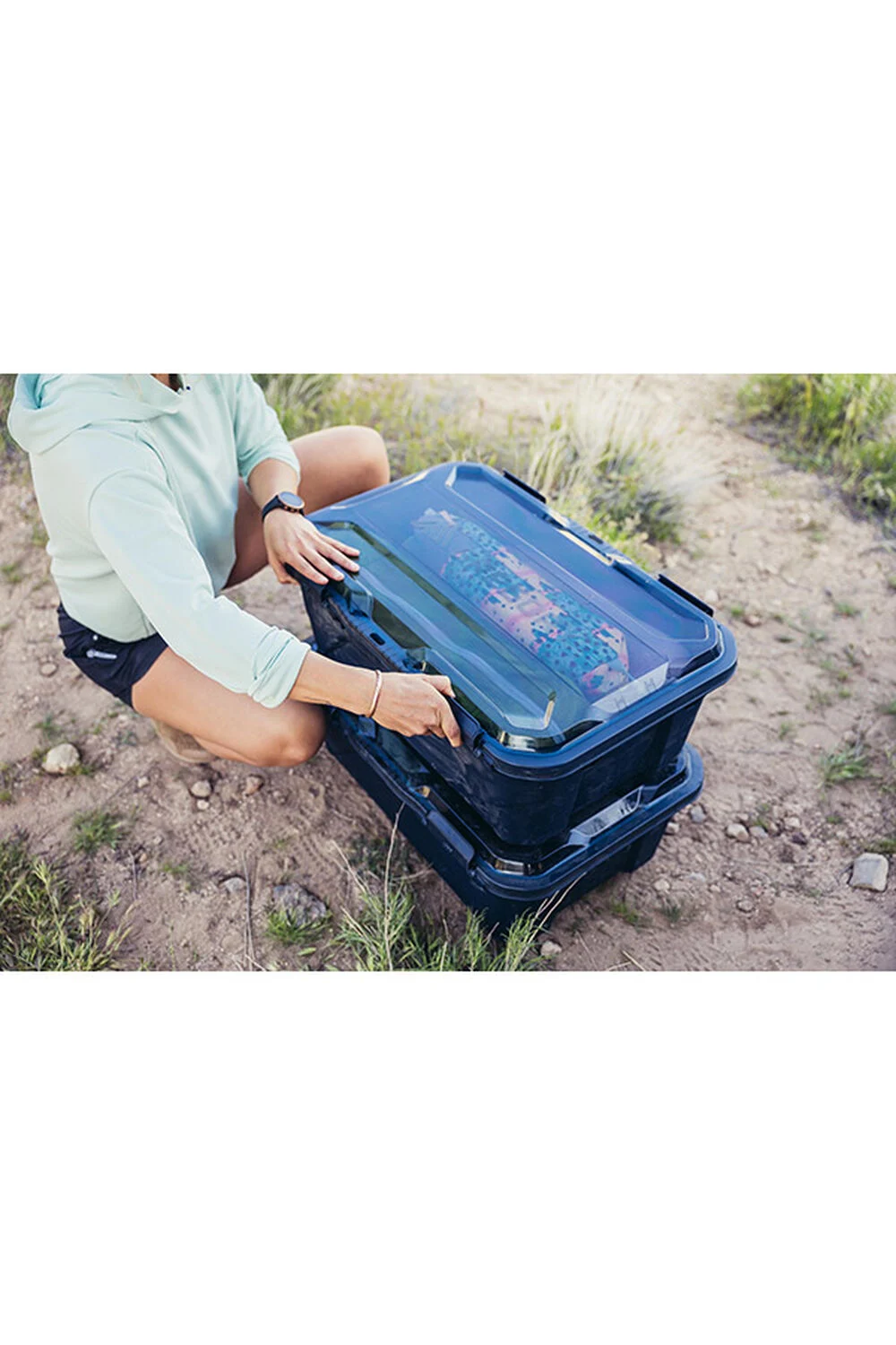- Bottom built from 50% recycled material and lid and latches made from polycarbonate.