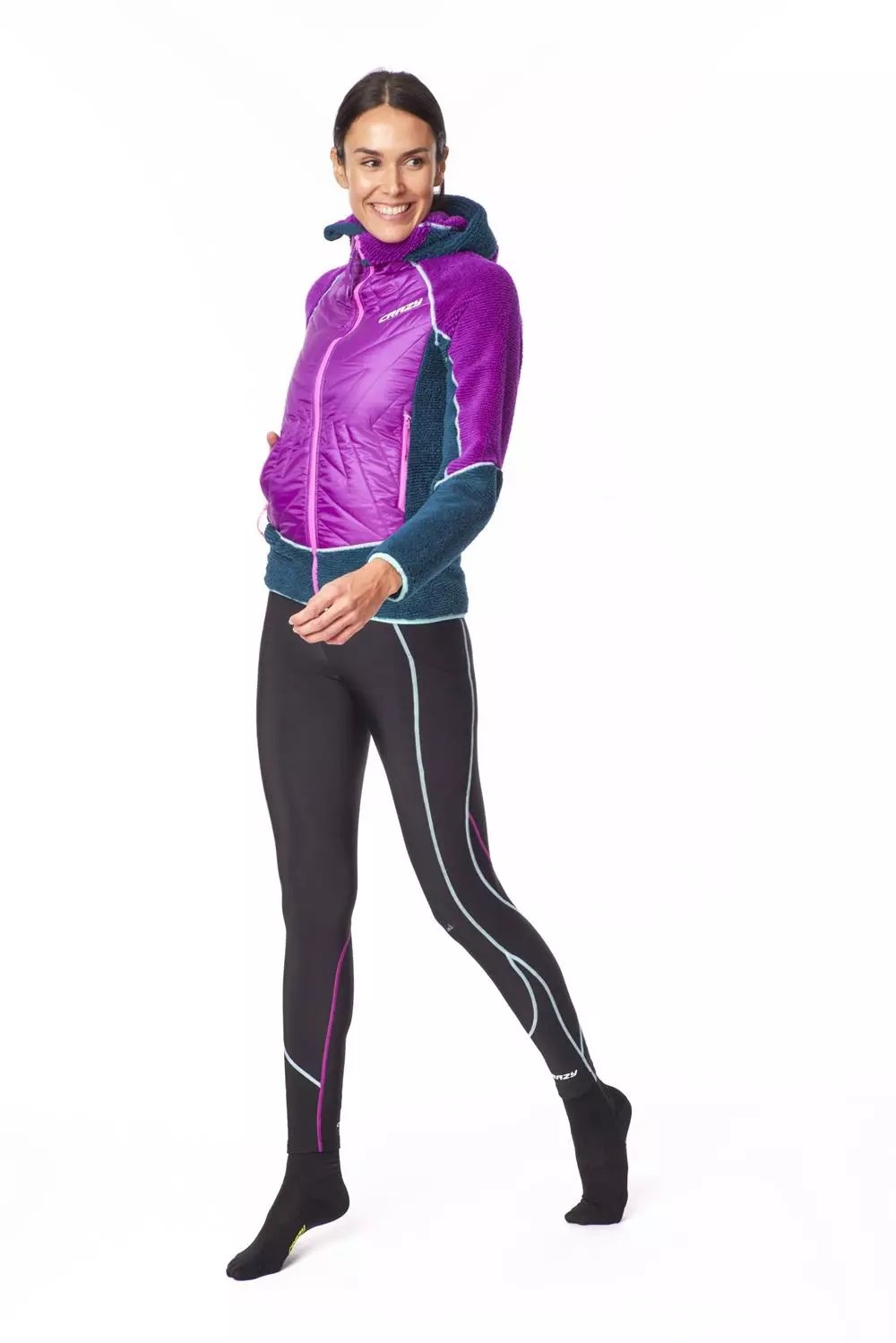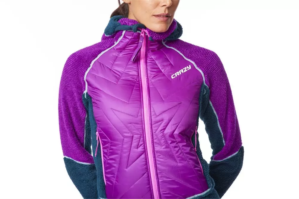 Hooded hybrid jacket with high thermal performance.