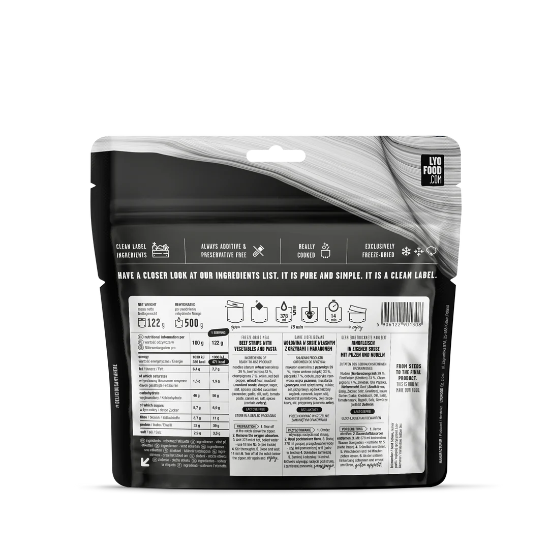 Η πραγματική γεύση ενός σπιτικού πιάτου: Δίνουμε προσοχή όχι μόνο στη διαδικασία ξήρανσης με κατάψυξη, αλλά και στον τρόπο προετοιμασίας των γευμάτων μας. Επιλέγουμε συστατικά υψηλής ποιότητας και μαγειρεύουμε πάντα κάθε γεύμα πριν το στεγνώσουμε με κατάψυξη. Αυτό εξασφαλίζει την πραγματική, φρέσκια γεύση που κάνει τα γεύματα LYO EXPEDITION τόσο εξαιρετικά. Άλλοι πάροχοι αποξηραμένων με κατάψυξη γεύματα αναμιγνύουν τα συστατικά αφού έχουν μαγειρευτεί ξεχωριστά. Δεν το κάνουμε.