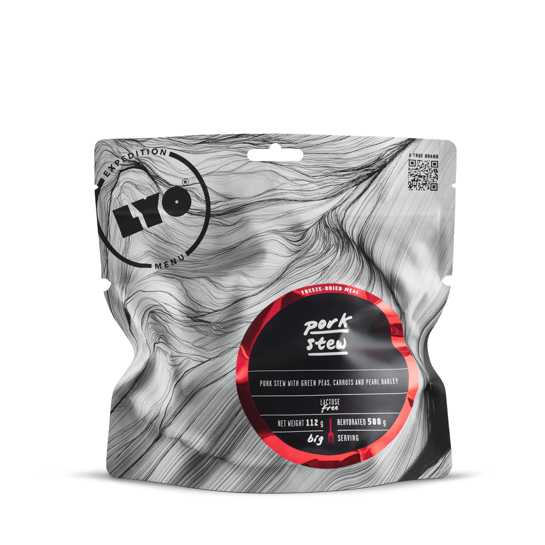 It’s easy to enjoy the outdoors with delicious food in your backpack. LYO Stew with Pearl Barley is a well-balanced dish created to give you plenty of energy for the final stretch of any adventure. Imagine tender pieces of pork and pearl barley dipped in a creamy sauce with a generous portion of veggies, including carrots, red bell peppers, green peas, parsley root, and onions. Packed with carbohydrates and protein, this is the perfect fuel for what’s waiting for you just around the corner.