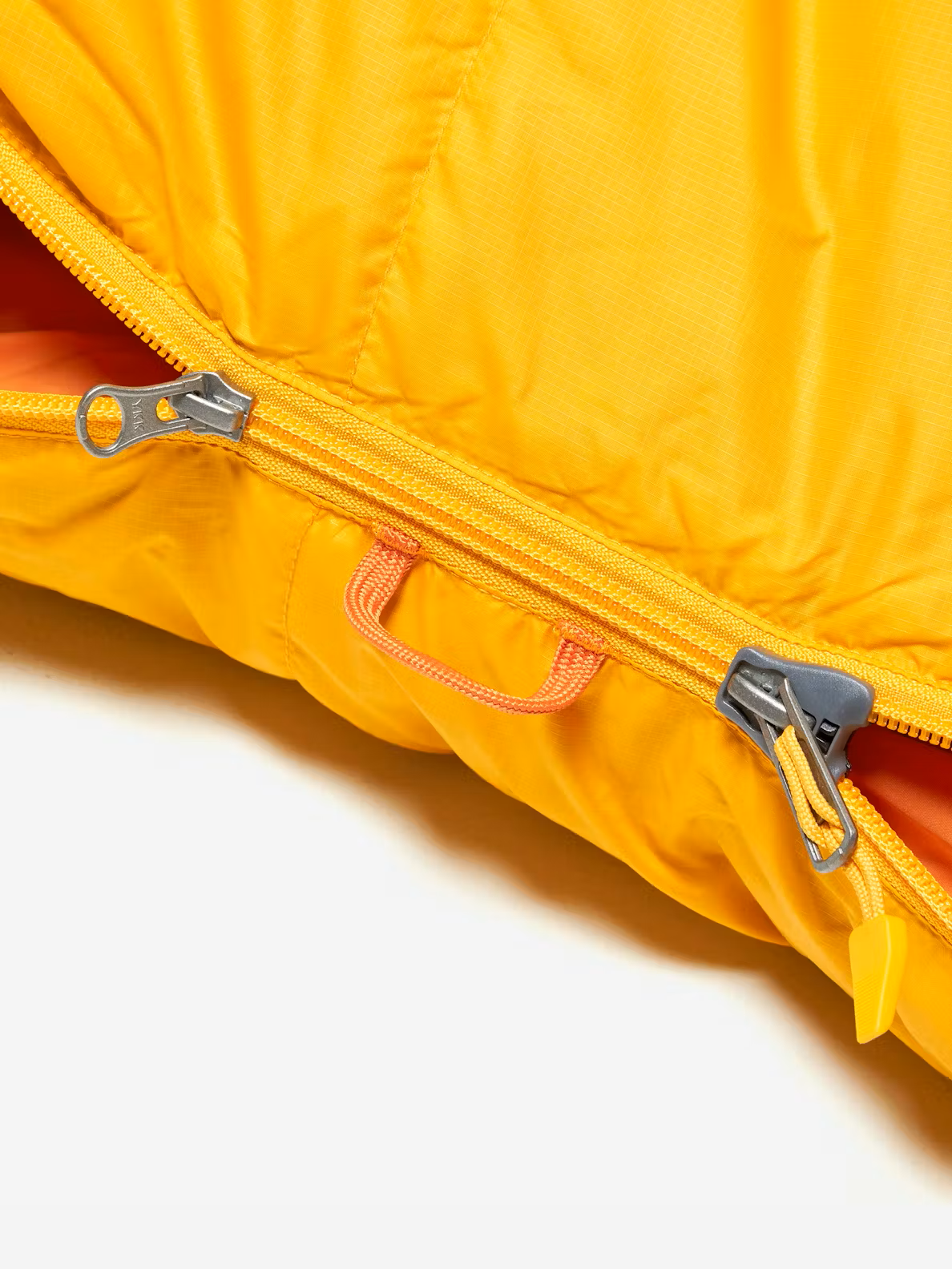 Expand your campsite horizons beyond your car with a pack-friendly down bag that's packed full of comfort. Lofty, yet light, this down mummy bag is packable enough to carry on your back and roomy enough for nights cozied up in the trunk. Lightweight 600-fill down will keep you warm on single digit nights whether you're setting up a plush off-grid basecamp for the weekend or moving to new sites every night. 100% post-consumer recycled ripstop shell and liner can handle extended use on the trail with an anti-snag zipper slider that makes getting in and out a breeze and allows you to dial in your comfort throughout the night. Internal stash pocket is perfect for keeping small valuables safe and warm with the help of your body heat.