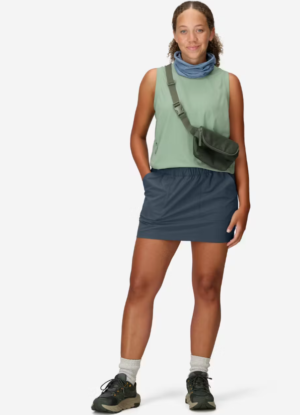 Women’s Marmot AirExchange Skort – a stylish and functional skort combining a lightweight skirt with built-in shorts. Made from breathable, quick-drying AirExchange™ fabric with UPF 25 sun protection. Perfect for hiking, travel, and everyday wear.