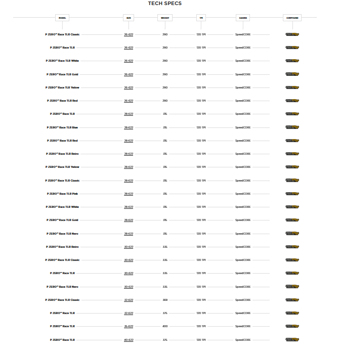 The P ZERO™ Race TLR RS represents the latest addition to our range of P ZERO™ Race road racing tires, made in Italy. It has been developed in collaboration with professional athletes from our World Tour teams to deliver superior speed and grip performance compared to any other tire we have created. This achievement is made possible by the new SmartEVO² compound, formulated with the know-how and latest materials used in Motorsport, ensuring further improvement in grip and handling on both dry and wet surfaces. Additionally, we have lightened the patented SpeedCORE™ structure, featuring a thin, hermetic layer of rubber compound enriched with aramid particles. The combination of these factors has made it possible to create a high-performance tire that is even faster for competitors, but also for those who wish to benefit from the same tech as the pros.