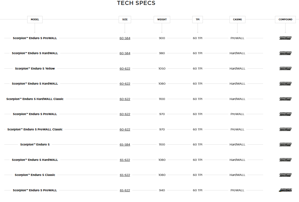 Technical details of the Pirelli Scorpion Enduro S MTB folding tire