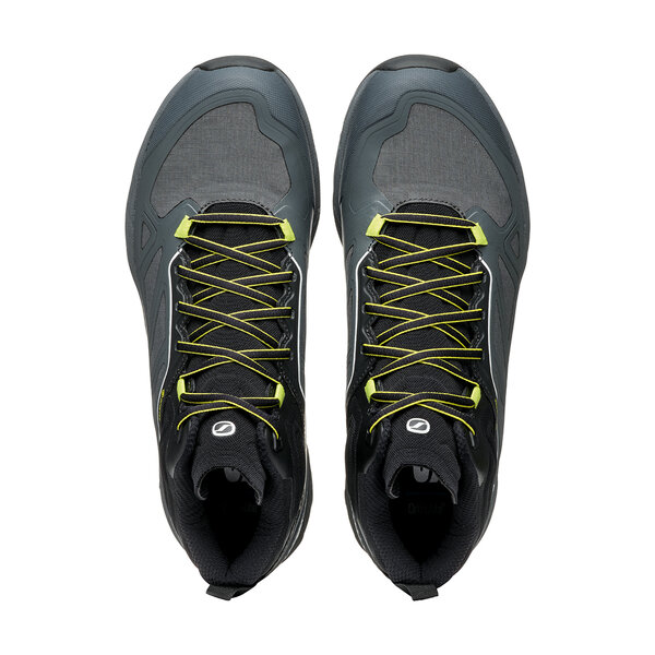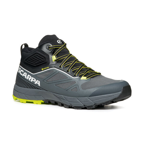 The approach shoe that offers support and protection at the ankle, thanks to the mid version. Rapid Mid GTX is designed for moving fast on mountain terrain, even if it rains. Ideal for technical trails, when approaching the climbing wall, easy to attach to the harness and performing well on steep and fast descents.
