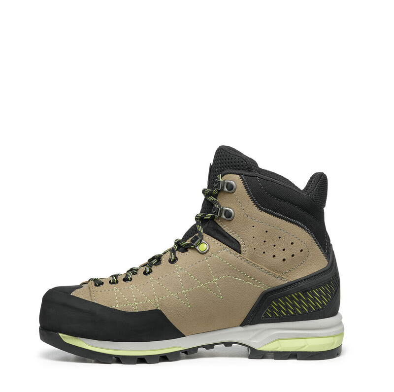 ABS Precision is the new sole with Bascula Adaptive System technology that combines rigid and rocker caps in the foot strike phase, ensuring excellent grip and safety on all surfaces and inclines while maintaining maximum comfort. The technology works as a balancing element, controlling the support of the foot and promoting proper impact with the ground. It ensures safe walking and maximum balance even on uneven trails where the foot, forced into unnatural positions, needs maximum support. The MONT - VIBRAM compound tread also features channels that can promote the failure of a specific area in case of uneven terrain. But at the same time grip is maintained and foot stability is increased.