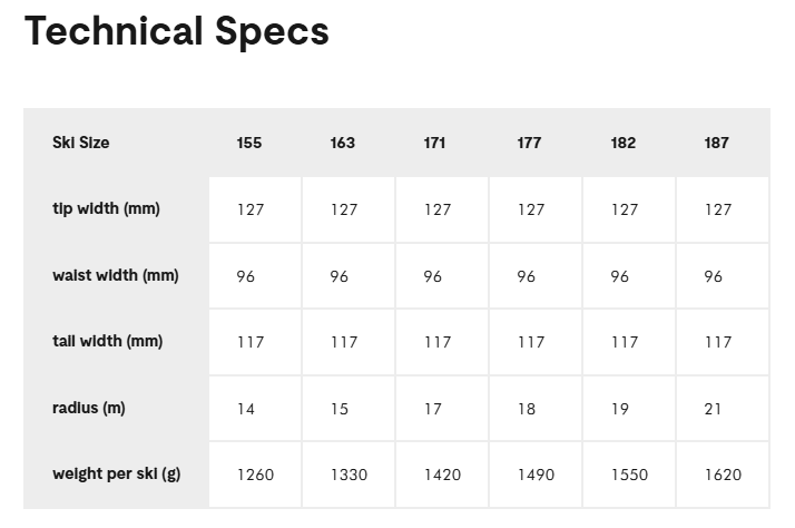 Ο παραδοσιακός σχεδιασμός flat tail είναι κατασκευασμένος για ταχύτητα, εξαιρετική πρόσφυση και έλεγχο κατά τη διάρκεια των επιθετικών στροφών. Φέρει στο σύγχρονο κόσμο με ένα ελαφρύ rocker στην ουρά, κάνοντάς το πιο εύκολο από ποτέ να διασχίσετε τη στροφή σας και να αποφύγετε να κολλήσετε σε φρέσκο χιόνι.
