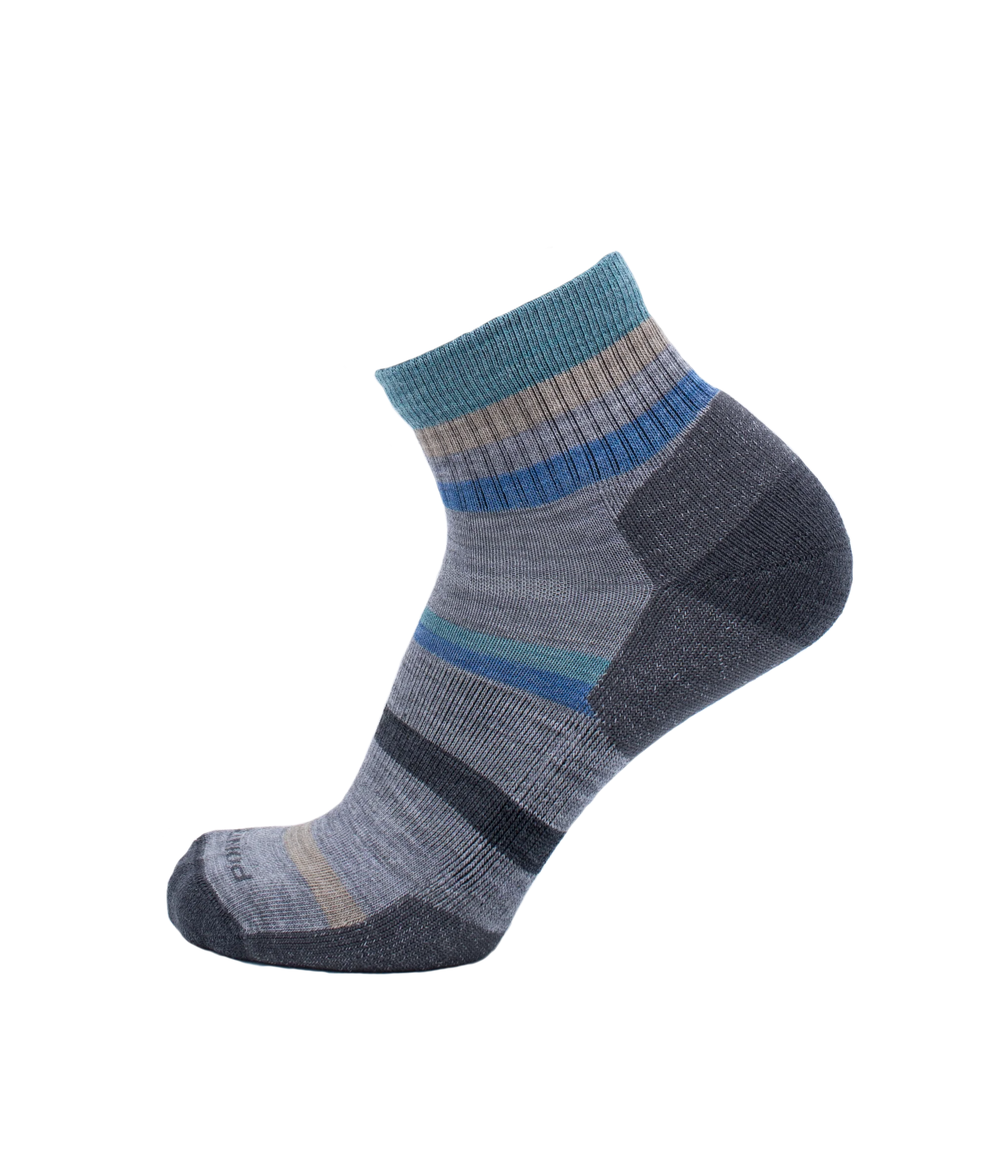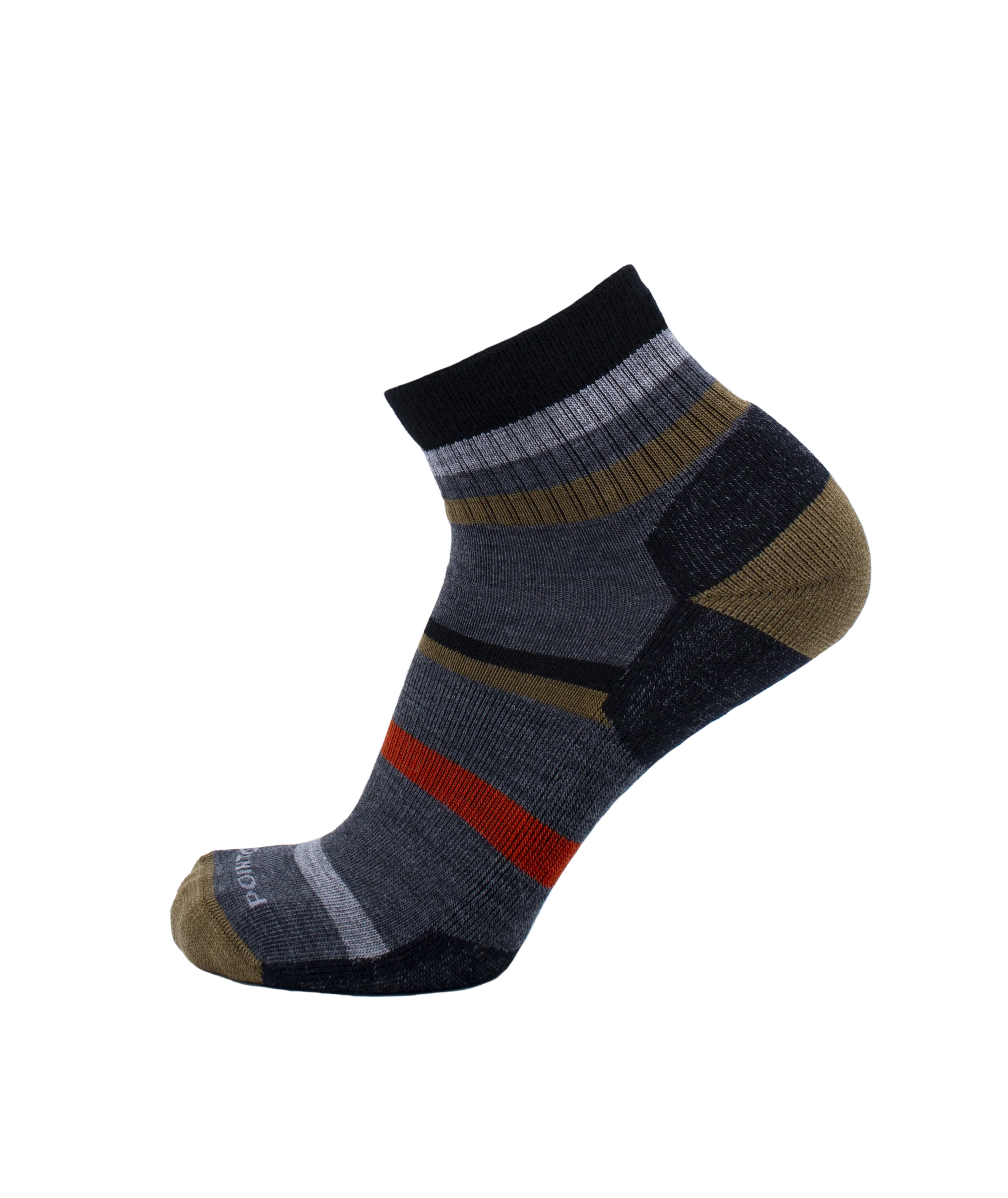 Maximize evaporation and accelerate dry time for unmatched comfort and performance with these hiking socks from Point6. For those seeking light cushioning under the foot and exciting color patterns, the mixed stripe light quarter (2 1/2" cuff) crew is an excellent choice. Best with low-cut hiking shoes and designed to meet the demands of any outdoor activities.