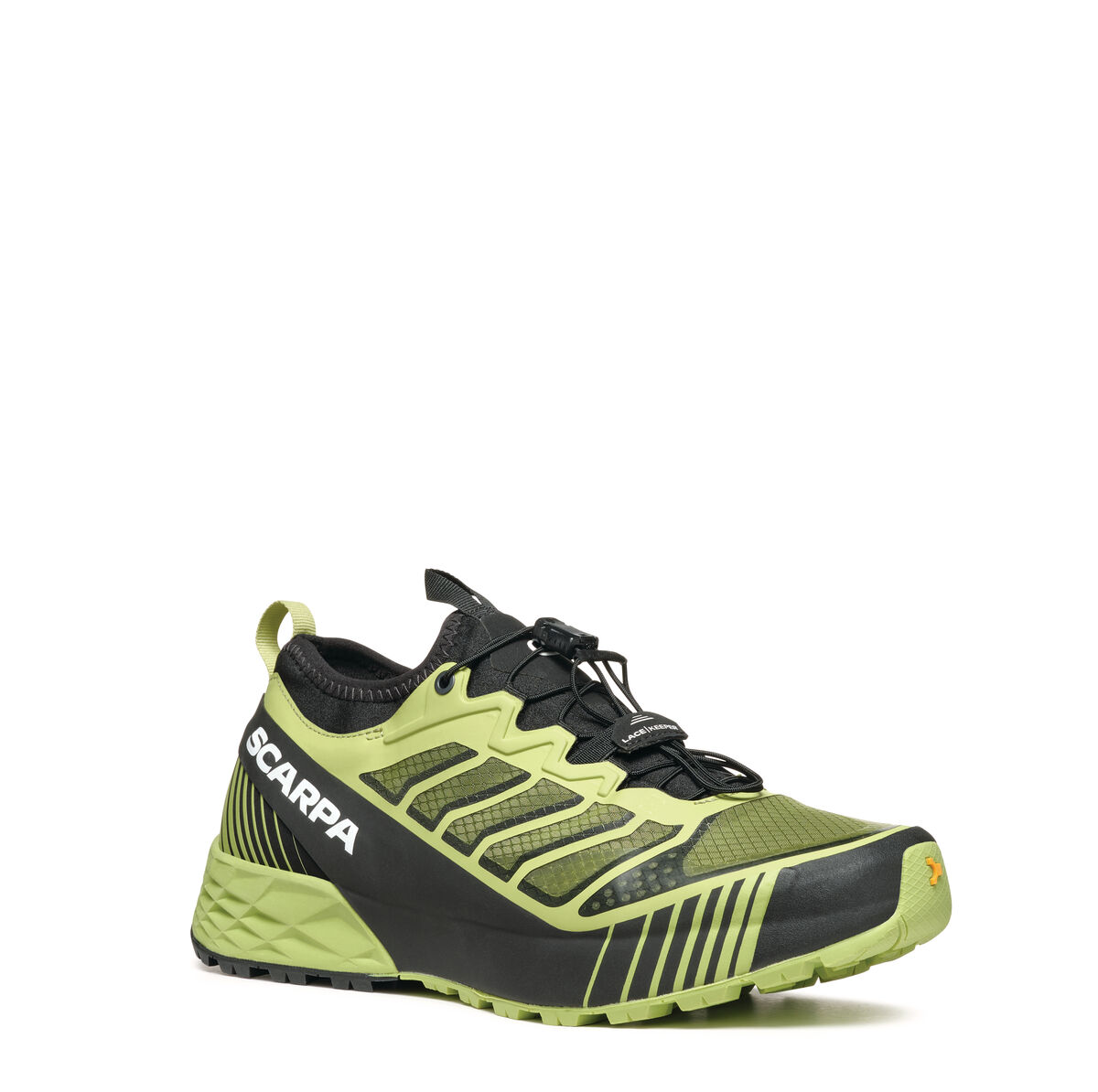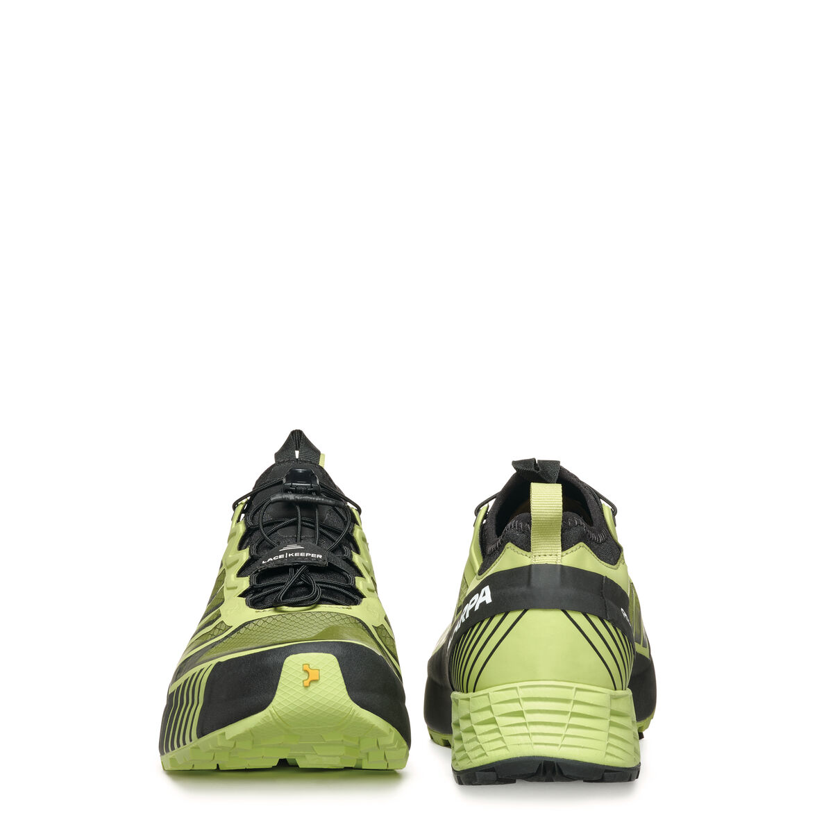 UPPER: The upper is built with Sock-Fit LW by SCARPA construction, featuring a lightweight and super breathable mesh bootie with heat-sealed reinforcements, which guarantees a precise and even wrap around the foot, while still providing outstanding comfort and flex at the ankle collar, tongue and forefoot. The shoe is built to wrap the foot with precision thanks to it’s reduced volume fit, perfect for this more technically oriented shoe. The heel is stabilized by an TPU band that completely wraps the shoe.