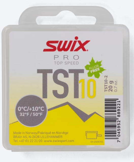 TST offers a unique combination of water repellency, dirt repellency, durability, and exceptional hardness. This combination makes TST the fastest and most advanced next-generation Swix racing wax. It can be used as a top coat or base layer under other glide products like TS liquid. The optimal snow condition for TS10 is wet and dirty snow with temperature +0°C to +10°C.- The optimal snow condition for TS10 Turbo is wet and dirty snow.