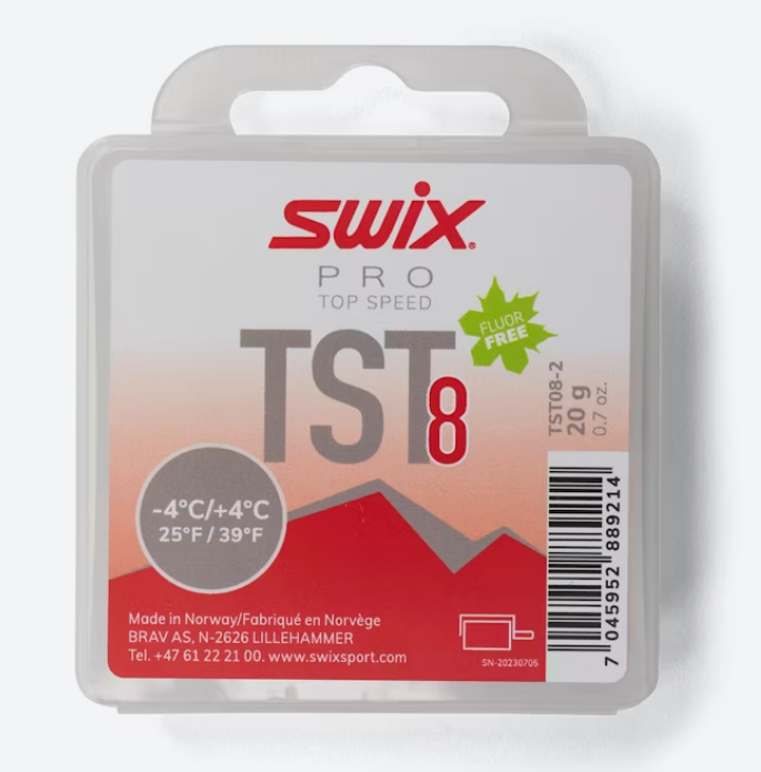 Top Speed Turbo (TST) is a racing wax line developed especially for roto wool application, meaning that waxing iron is not needed. TST offers a unique combination of water repellency, dirt repellency, durability, and exceptional hardness. This combination makes TST the fastest and most advanced next-generation Swix racing wax. It can be used as a top coat or base layer under other glide products like TS liquid. The optimal snow condition for TS8 is dry snow with temperature -4°C to +4°C.- The optimal snow condition for TS8 Turbo is dry snow.