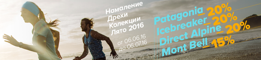 В началото на лятото, магазини Basecamp ни правят страхотна изненада! Летните колекции за 2016г. на любимите марки Patagonia, Icebreaker, Direct Alpine и Mont Bell са на страхотни цени - за едно още по-цветно и вълнуващо лято! Търсете ги в магазините на бул. Черни връх 90, Стамболийски 46 и онлайн тук: http://basecamp-shop.com/