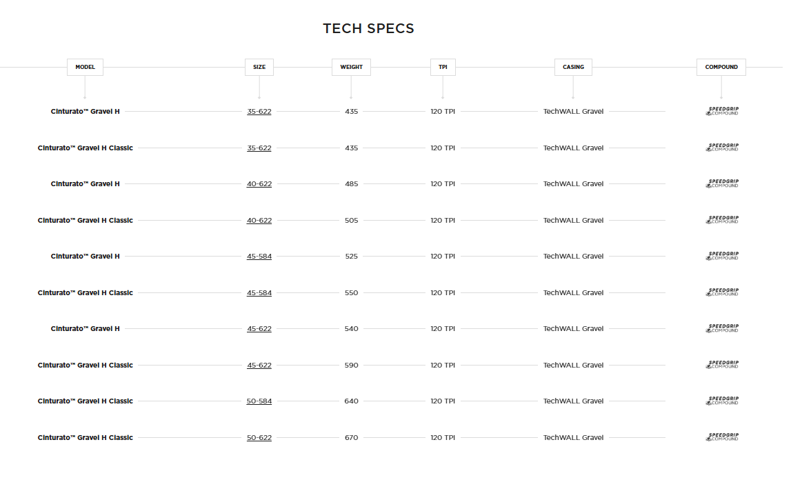 Cinturato™ H е гума предназначена за чакъл и турове, при които повърхността е предимно твърда и фокусът е върху скоростта и ниското съпротивление. С нисък профил и компактно разстояние между протектора, тази гума е перфектна за бързо и безопасно каране по твърди повърхности - при всякакви метеорологични условия. Специалната смес SpeedGRIP осигурява издръжливост и оптимално сцепление без компромис с производителността.