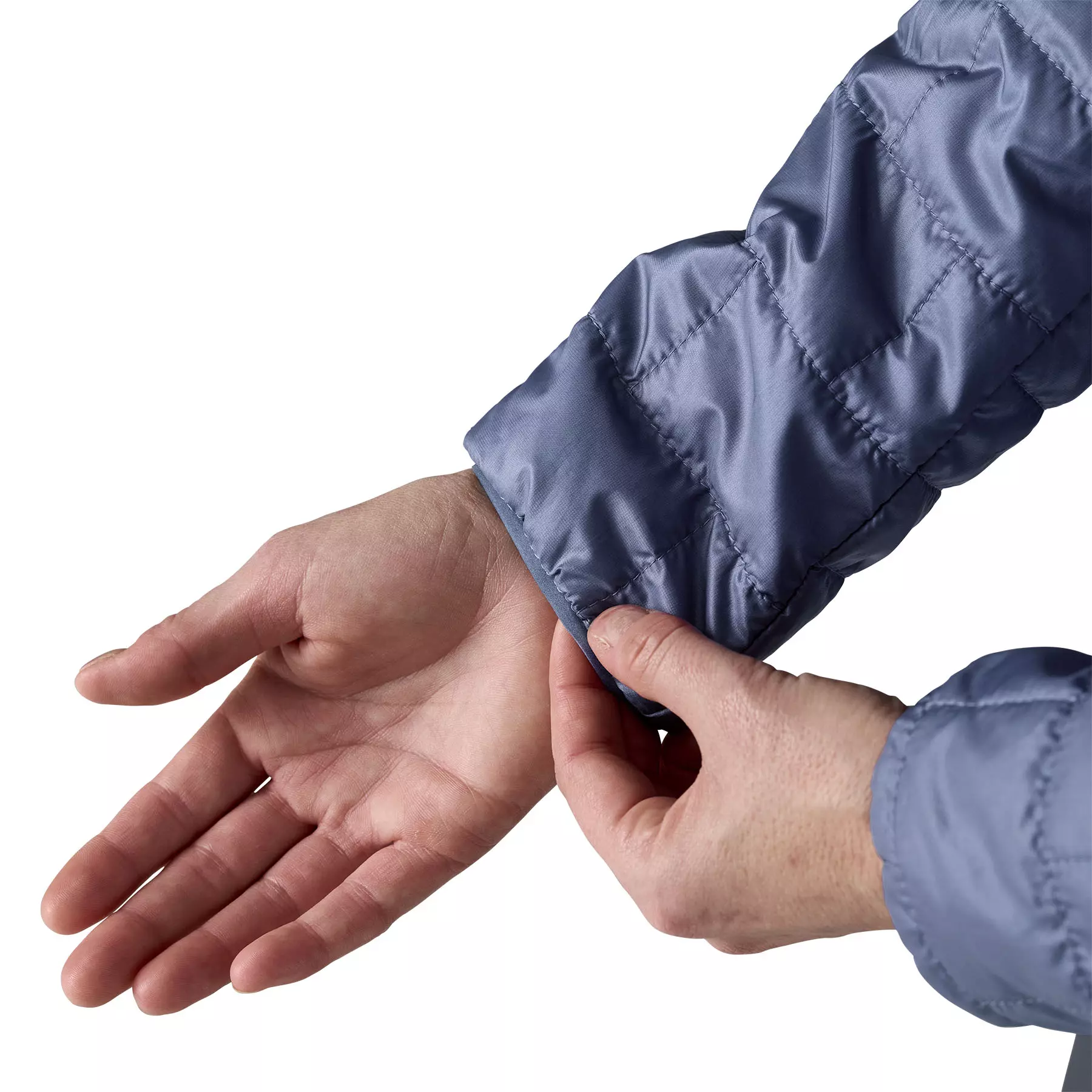 Топлото и устойчиво на вятър и вода яке Nano Puff® Hoody разполага с невероятно лека и силно компресираща се изолация 60-g PrimaLoft® Gold Insulation Eco със 100% рециклирано съдържание с P.U.R.E.™ (Produced Using Reduced Emissions) технология, опакована в обвивка от 100% рециклиран полиестер.